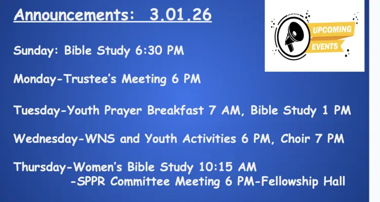 All in person church services are canceled for tomorrow due to the winter weather conditions. However, there will be an 11:00 AM online sermon that you can join via Facebook. We hope everyone stays safe and warm during this winter weather!